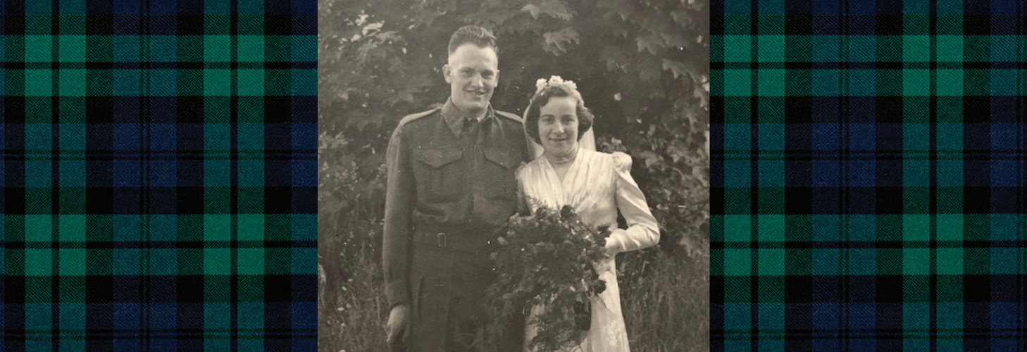 The Argylls went overseas in late July 1943 and were based in Uckfield, England, from November 1943 until embarkation for France in July 1944. There were many romantic liaisons between Argylls and local woman during those months. Lyall met Iris Verona Wickham at a local church; the young couple fell in love and married, without military permission, on 14 June 1944.
