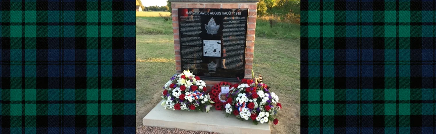 Image 12. The memorial to the 19th Bn, commemorating the capture of Marcelcave. Erected by the Argyll Regimental Foundation in 2017. (Author’s collection.)